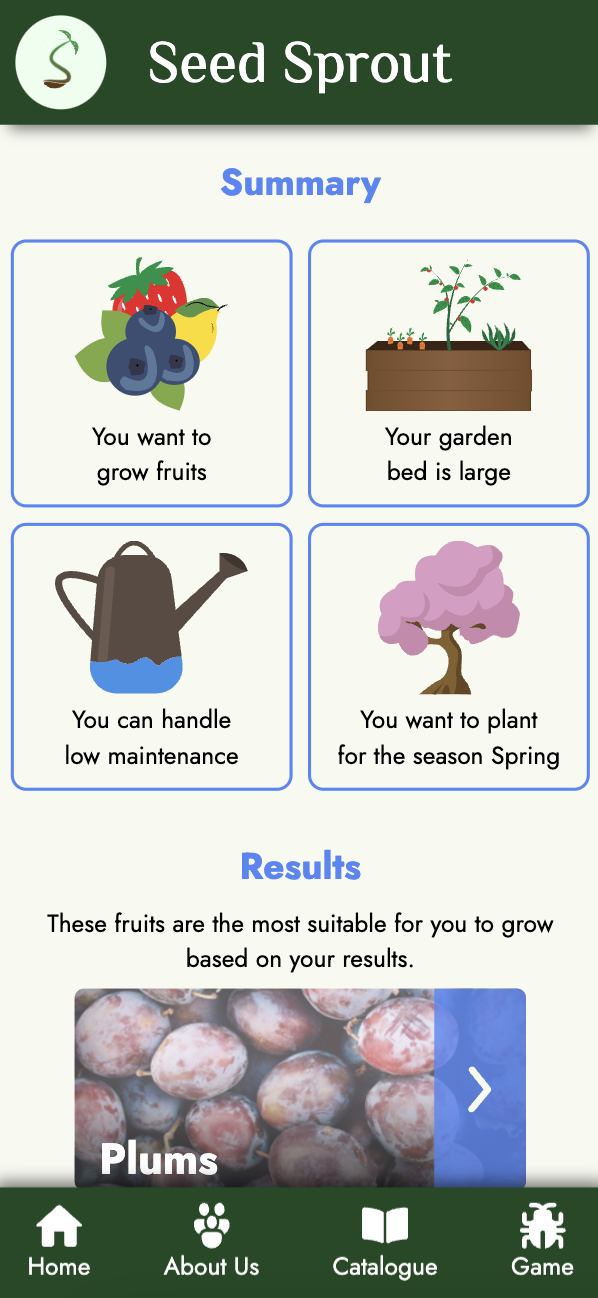 The web app elevates learning to an interactive level, where you can take quizzes to find out what produce you can grow depending on your conditions, play a game that helps identify pests, or casually read upon a certain fruit or vegetable!